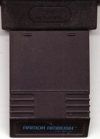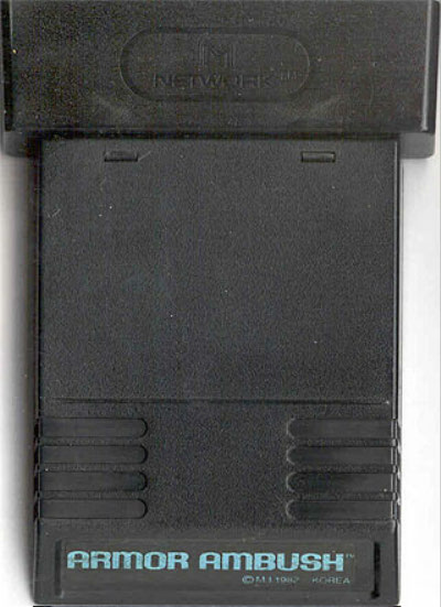 Armor Ambush Cartridges version a)* C ©1982, Korea, black label, v1., no M Network molded on base NOTE: versions a & b have the same main and end labels, but the cartridge itself is different