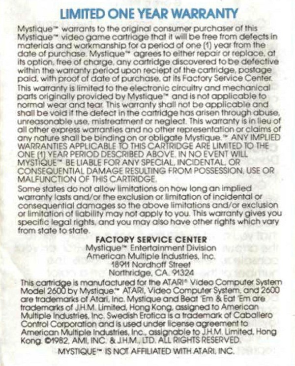 Manual A) ©1982, peach, no product #, 8 pages (folds out), 3 x 3.75”, Printed in Hong Kong