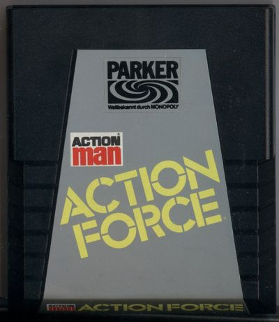 Action Force Cartridges version a)* C ©1982, no picture, CART: spring, ML: no sticker, PAL, Action Man before Action Force, “Action” in Action Man has black letters
