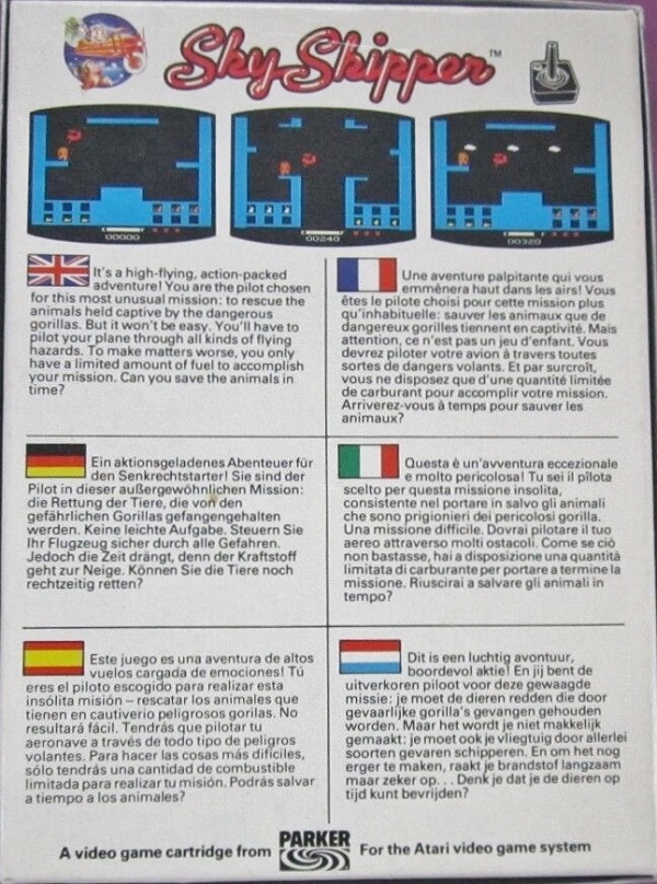 Sky Skipper Boxes 1) ©1983 on side of box, silver box, two piece box, illustration same as label Front
