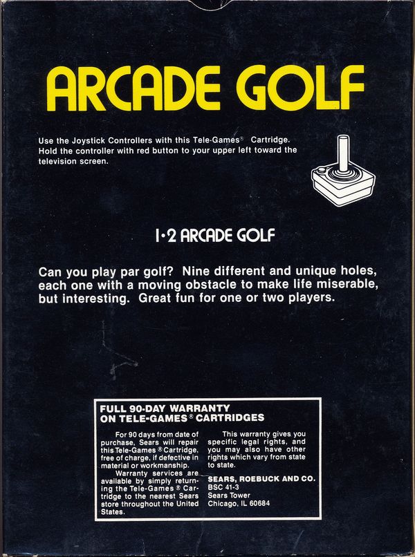 Arcade Golf Boxes 1) no ©, black with yellow letters, warranty info on back, no options table shown, #6-99829 on side Front