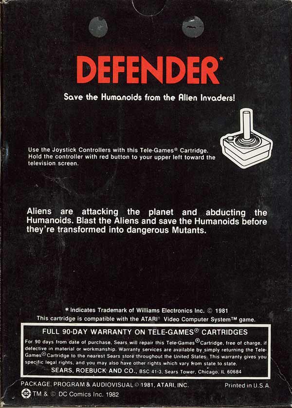 1) ©1981, black box with red letters, includes Atari Force #1 comic book, warranty info on back, no game options shown, Printed in USA, #49-75186 on side, glued flap style box, Rev 1 on flap