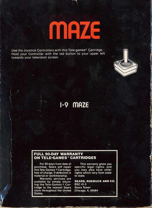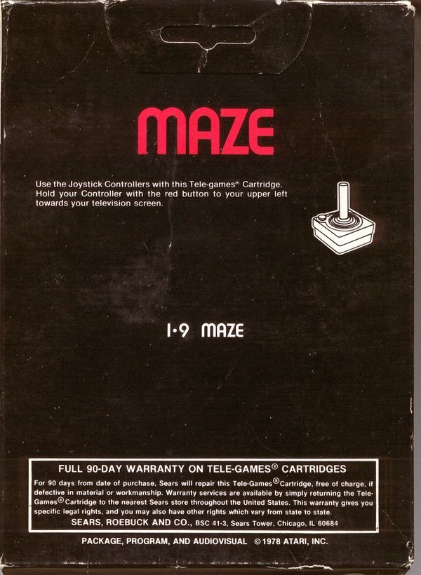 Maze Boxes 1) no ©, black box with red letters, illustration same as picture label, warranty info on back, no game options shown, #6-75112 on side, tab flap style box Front Back