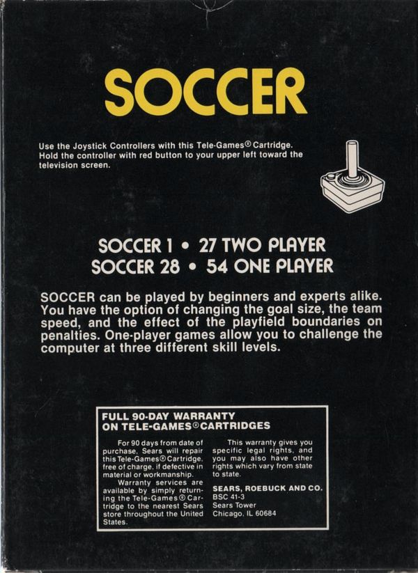 1) no ©, black box with yellow letters, warranty info on back, game options shown, #49-75155 on side, standard flap style box