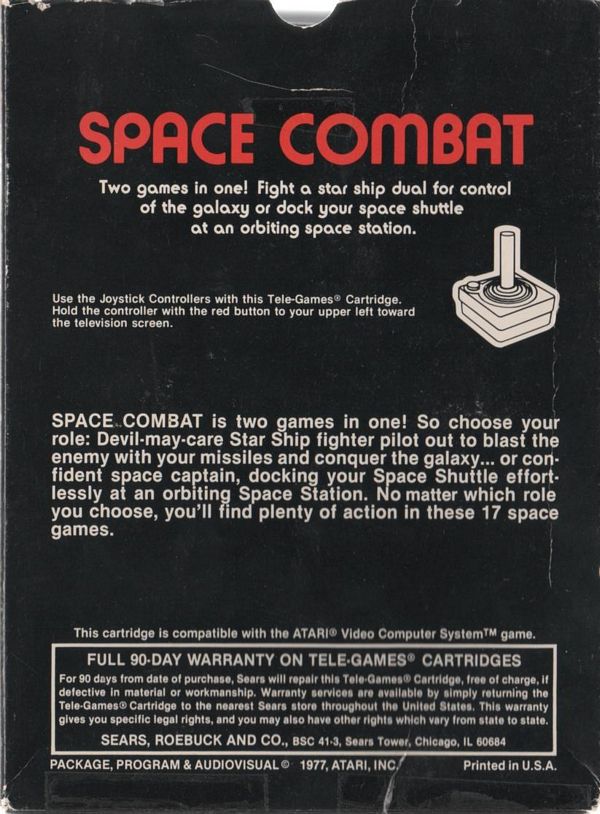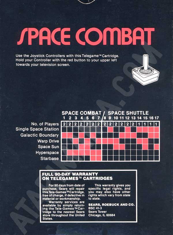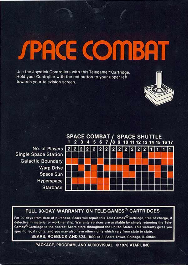 Space Combat Boxes 1) no ©, black box with red letters, warranty info on back, game options table shown, #6-99812 on side, standard flap style box Front Back