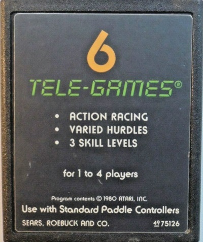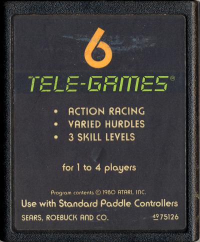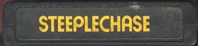 Steeplechase Cartridges version a)* U 49-75126 ©1980, text label, thin font, small ® by Tele-games, gold w/ large “6”, EL: 2” Steeplechase