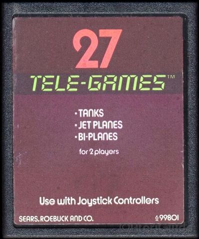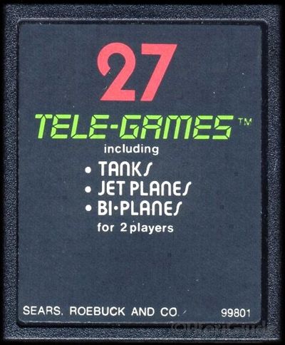 Plus Cartridges version a)* R 99801 no ©, text label, red letters, slanted “s” font, “Co.” in “Sears, Roebuck and Co.” ends under the “s” in “for 2 players”