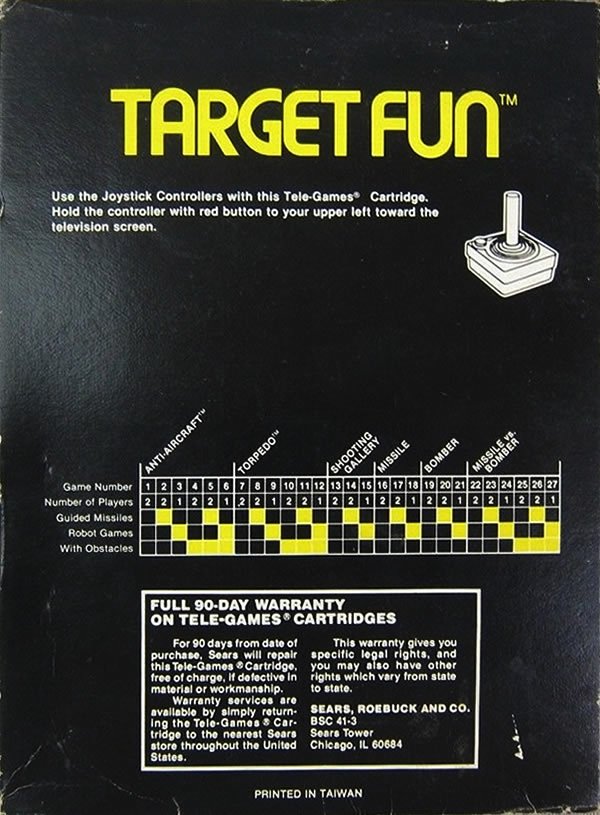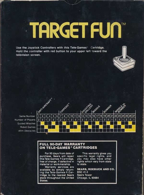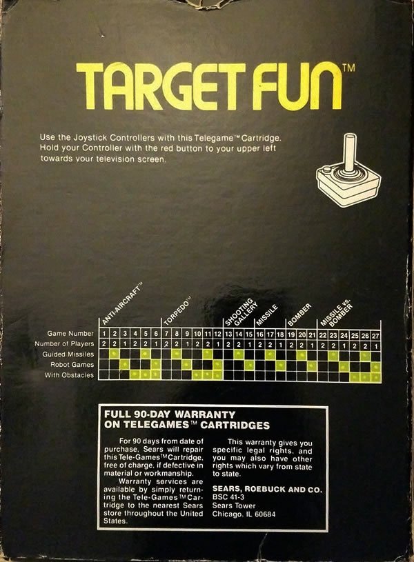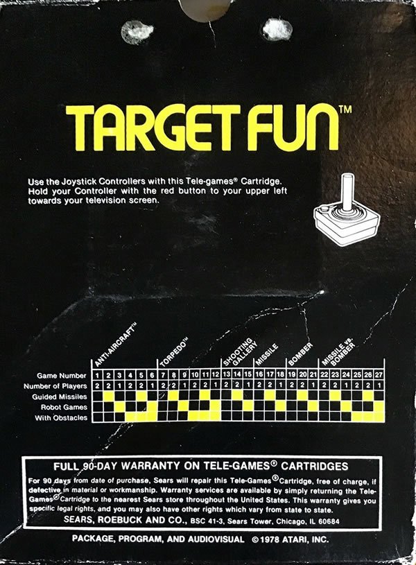 Target Fun Boxes 1) no ©, black box with yellow letters, front opening, game options table on back, #6-99802 on side, title reads up the side of the box Front Back