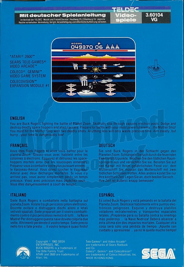 2) ©1983, blue and black box, illustration same as label, 5 languages on box, Made in Hong Kong