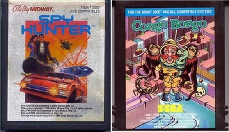 The first type of mold variation is what we're calling the standard cartridge versus the grip cartridge. This is the sides of the cartridge you hold when placing or removing the game in the Atari. The standard cartridge has light grooves that do not stick out from the side of the cartridge (Spy Hunter). The grip has plastic molded that extends outside the edge of the cartridge (Congo Bongo).
