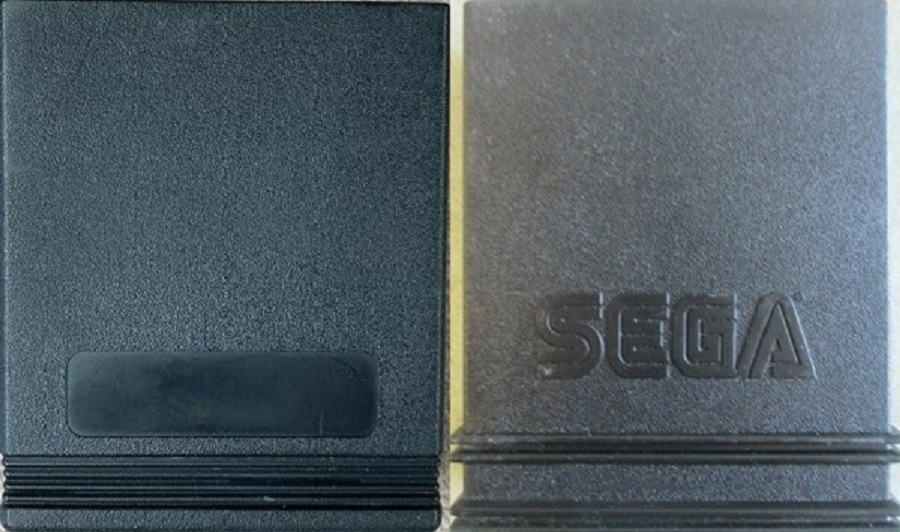 The second type of mold variation is on the back of the cartridge. In the first photo, there is a blank rectangle molded where the second shows “Sega” molded.