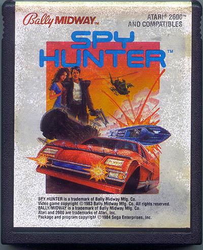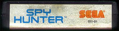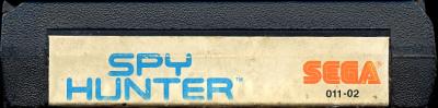 Spy Hunter Cartridges version a)* C ©1983 Bally, ©1984 Sega, white label, five line legal notice, no assembled, EL: “Spy Hunter” in blue letters, “Sega” in orange letters, 011-001, CART: standard case