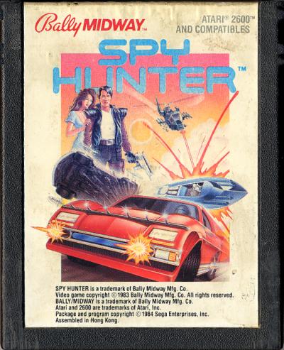 version b)* C ©1983 Bally, ©1984 Sega, white label, six line legal notice, assembled in Hong Kong, EL: “Spy Hunter” in blue letters, “Sega” in orange letters, 011-002, CART: “Sega”, grip case
