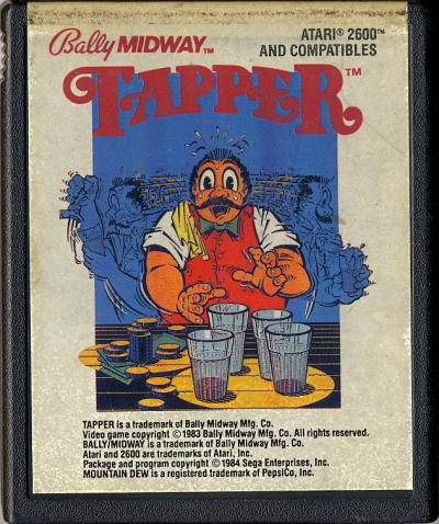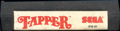 Tapper Cartridges version a)* C ©1984, white label, six line legal notice, no assembled, EL: “Tapper” in fancy red letters, “Sega” also in red letters CART: no “Sega”, standard case