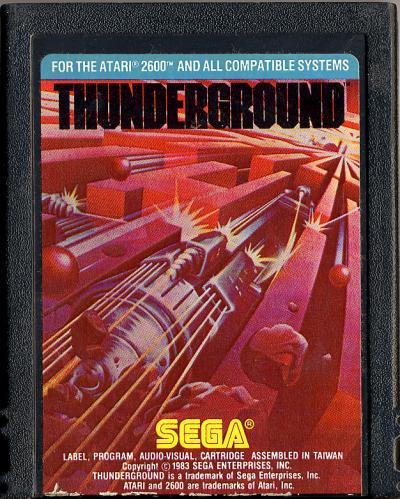 version a)* C ©1983 Sega Enterprises Ltd, four line legal notice, full illustration, ML: title black letters, EL: “Thunderground” in white letters, CART: “Sega”, grip case