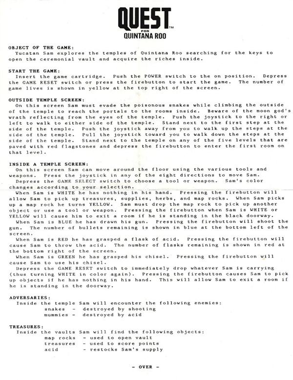 Quest for Quintana Roo Manuals [ Home ] [ Up ]