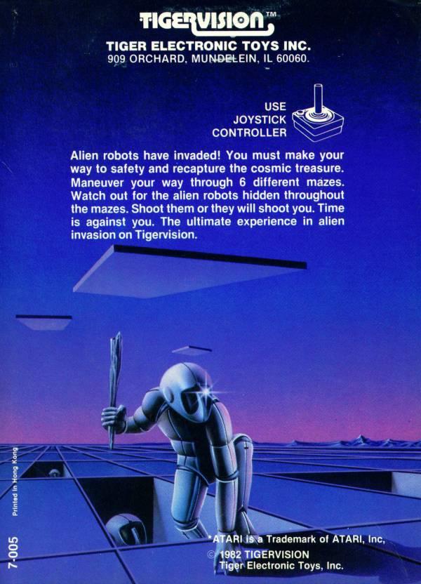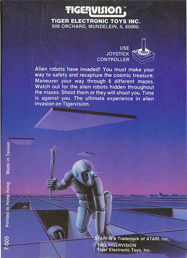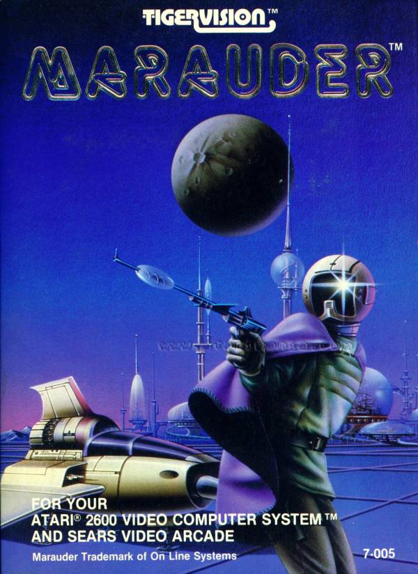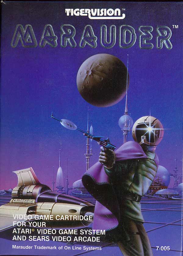 Marauder Boxes 1) ©1982, full illustration of label on box with red letters, no “Video Game Cartridge” above “For Your” on front, back of box is also a full illustration, Printed in Hong Kong, Made in Taiwan Front Back