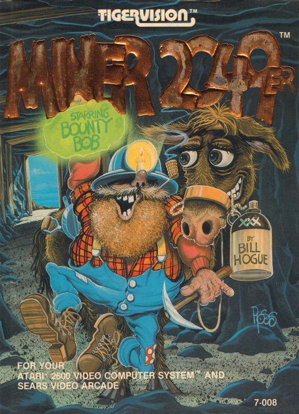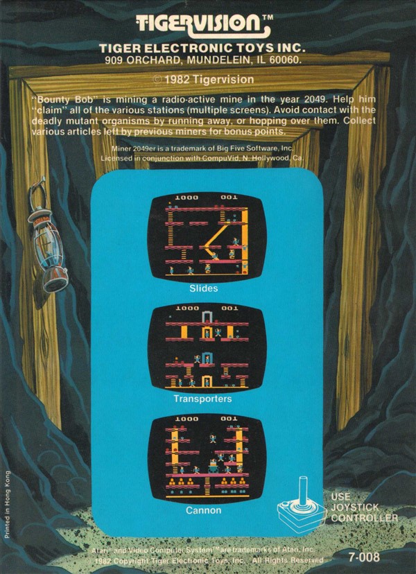 Miner 2049er Boxes 1) ©1982, full illustration of label on box, bronze letters, no printed Front Back