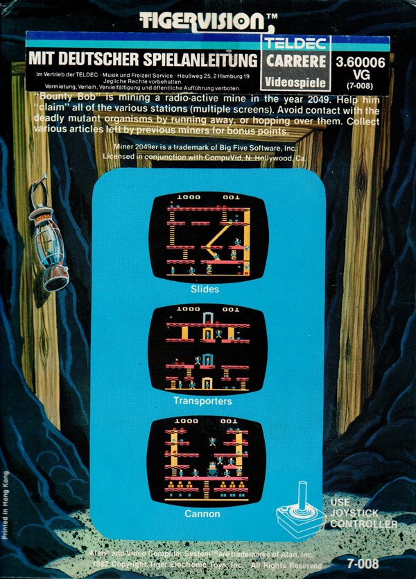 3) ©1982, full illustration of label on box, red letters, Printed in Hong Kong, German sticker over Tigervision address on back of box Front Back