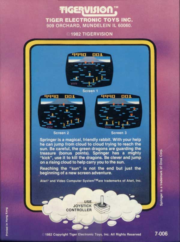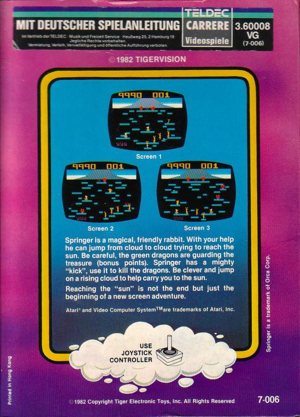 2) ©1982, purple, same illustration as label, Printed in Hong Kong, German sticker over Tigervision address on back of box