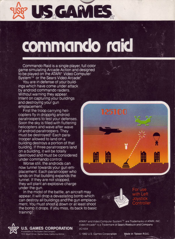 1) ©1982, black grid, Made in Taiwan, USG US Games on top, “new improved video graphics” lower right, “R.O.C.” on back