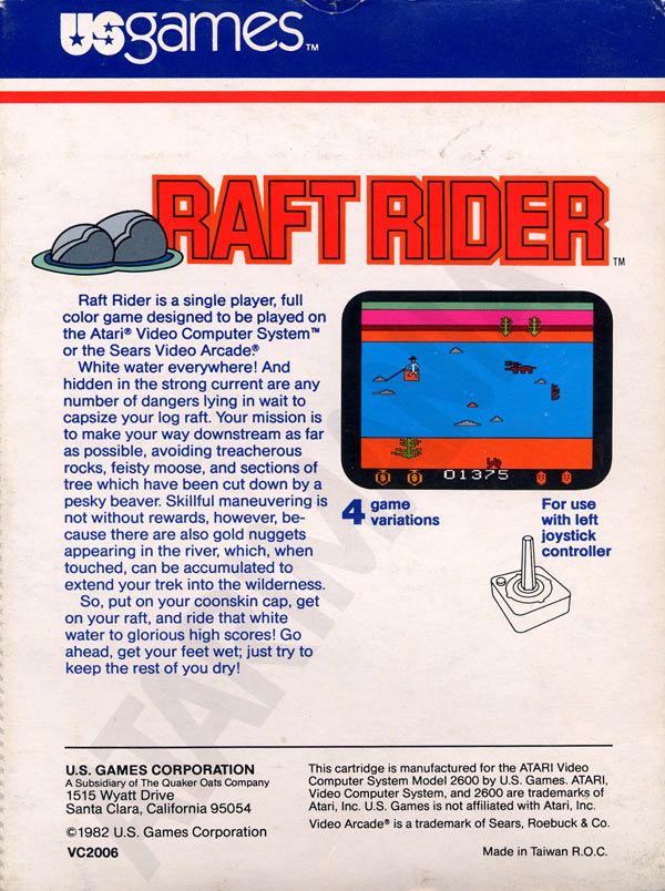 1) ©1982, white, illustration same as label, Made in Taiwan, US Games at top, “R.O.C.” on back