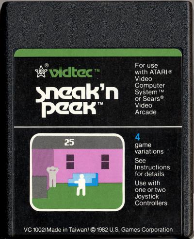 Sneak 'n Peek Cartridges version a)* R ©1982, black label, Made in Taiwan, CART: square cartridge, 1 line on bottom of notches, notches get thinner towards top version b)* C ©1982, black label, Made in Taiwan, CART: square cartridge, 3 lines on bottom of notches, notches remain same thickness from bottom to top NOTE: versions a & b have the same main and end labels, but the cartridge itself is different