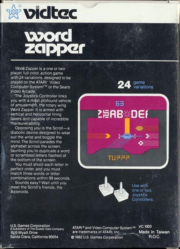 1) ©1982, USG Vidtec at top, “new improved video graphics” lower right, Made in Taiwan, “R.O.C.” on back