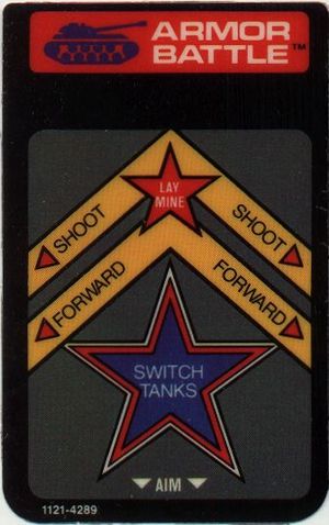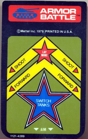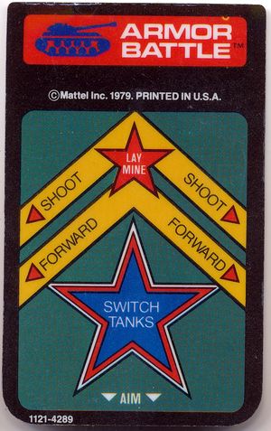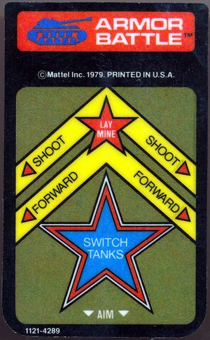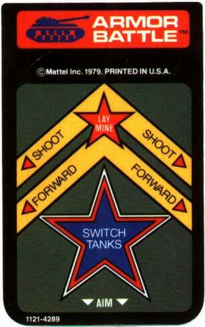 Armor Battle Overlays O1) ©1979, olive green/red, 1121-4289, Printed in USA, transparent, smaller letter font, i.e. “shoot” is 0.9 cm long